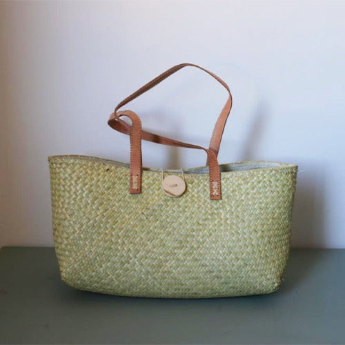 Craquez pour l’authenticité et l’élégance du petit panier en vacoas à main avec intérieur textile !