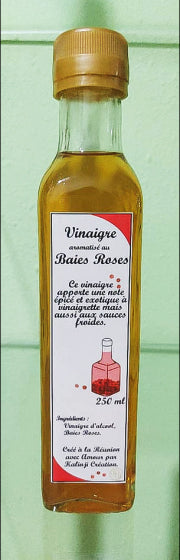 Apportez une touche de finesse et d’exotisme à votre cuisine avec notre Vinaigre aux Baies Roses. Élaboré à partir de baies roses soigneusement sélectionnées et infusées dans un vinaigre de qualité, il offre un équilibre parfait entre douceur et épices, avec des notes légèrement poivrées et florales.